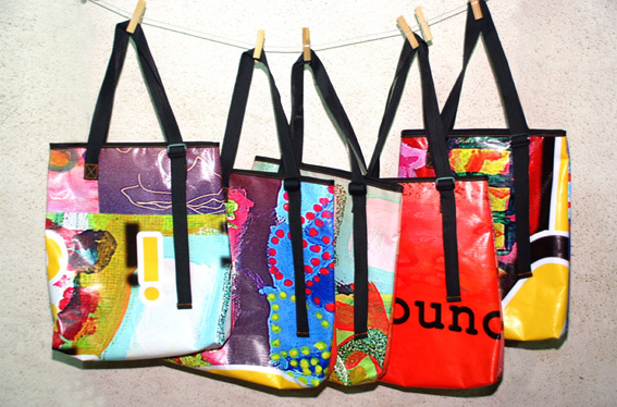 GREEN RATING Deep Green. Up-cycling durable but useless advertising banners into useful bags. These banners likely would otherwise have gone into the landfill. Locally produced.